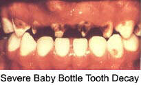 Baby Bottle Tooth Decay, or Baby Bottle Syndrome, or Nursing Bottle Mouth are all terms used to describe a dental condition, which involves the rapid decay of many or all the baby teeth of an infant or child. |