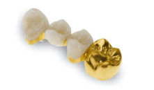 However not all crowns with the color of gold are the same - The best of the dental gold is an alloy of many metals, (gold, platinum, palladium, silver, copper and tin) and are usually about 76% gold or a little over 18 carat. Some gold crowns are made of an economy gold and are only gold in color and don't possess the casting characteristics so important for a good seal at the edges. These cheaper gold-content crowns are on the order of ten carat and do not have the tissue tolerance and compatibility of a higher gold-content alloy |