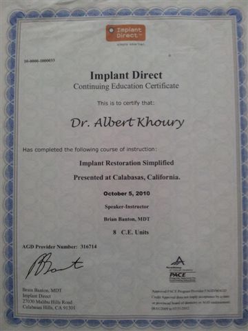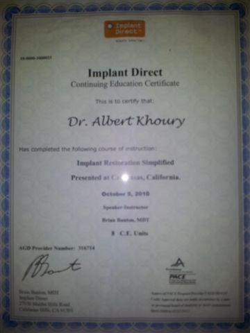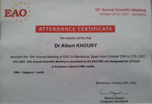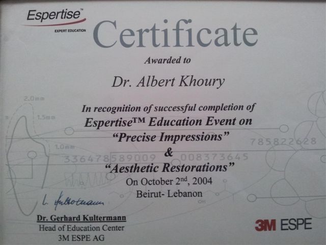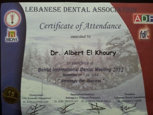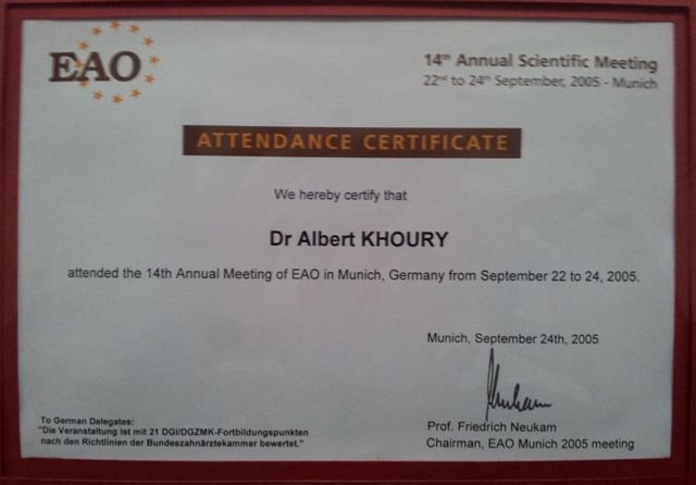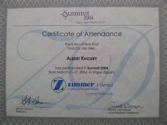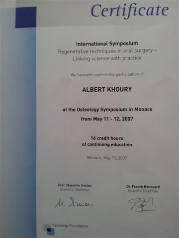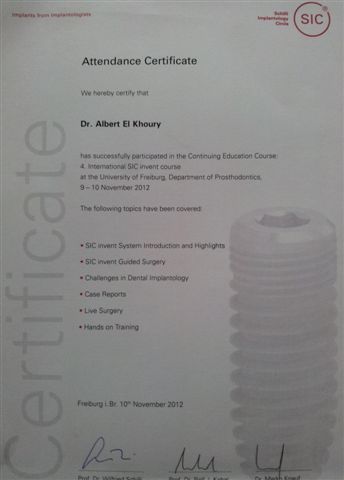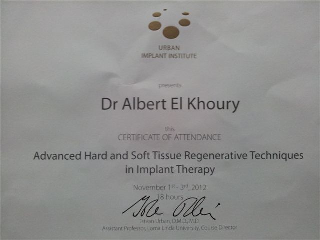 - Followed postgraduate courses at the New York University and Freiburg University in dental Implant