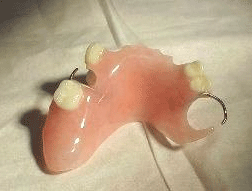 The pink material of the denture base is hard plastic and the same material used to make complete dentures. The main single advantage to this type of RPD is the cost. Also the new teeth and new denture base can easily be added to an existing treatment RPD. These are frequently fabricated even if the remaining teeth have existing decay or periodontal disease and their prognosis is doubtful. If later in the course of treatment some of the existing natural teeth are extracted for any reason, new false teeth can be added quickly to the partial, maintaining the patient's appearance.